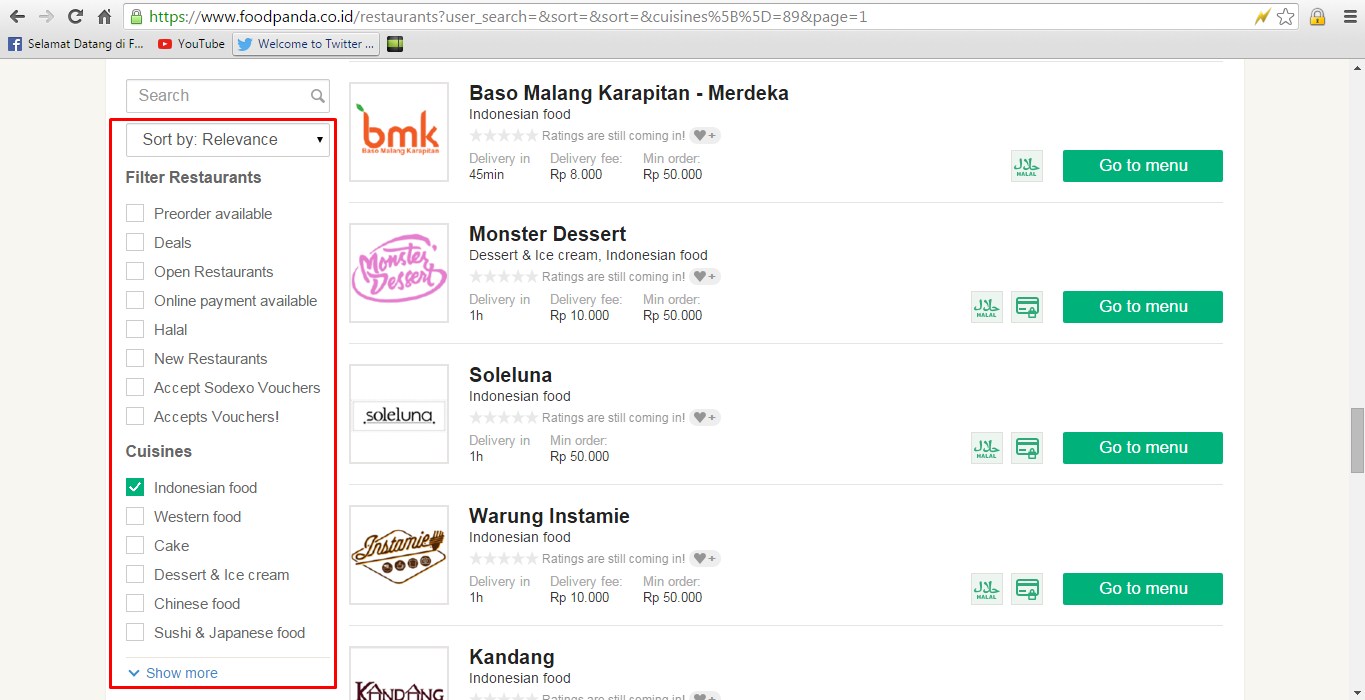 Abis gitu, abis di klik Find restaurants nya… kamu akan menemukan halaman website seperti gambar di bawah ini.