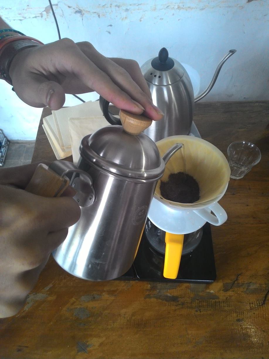 Kalian harus menakar kopi dengan takaran yang tepat. Menurut kang Hans, 15-16 gr saja sudah cukup.