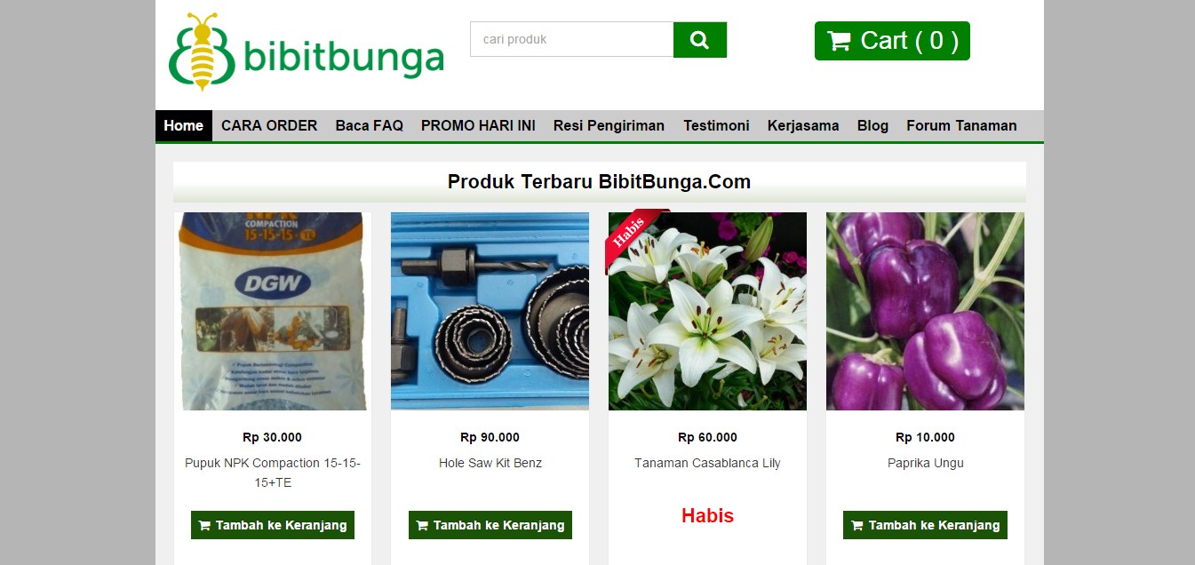 Udah gak ada lagi deh yang namanya kendala mencari bibit tanaman, karena sekarang semua itu dapat diatasi hanya dengan mengunjungi laman web bibitbunga.com. Disana terdapat beragam jenis bibit tanaman yang dapat kamu pilih sesuai keinginan.