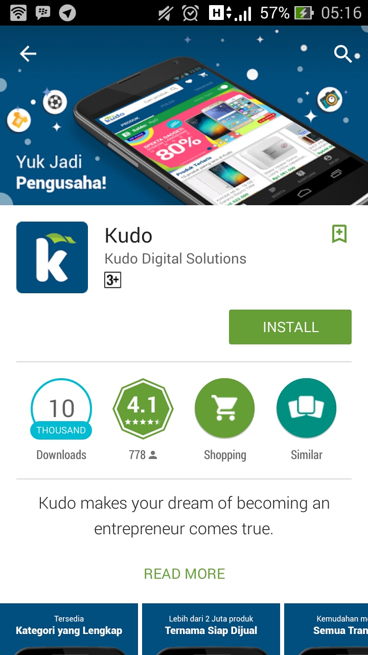 Dan dengan segenap hati, pilihan saya jatuh pada KUDO. *mulai lebay* Yap, KUDO yang merupakan singkatan dari Kios Untuk Dagang Online adalah sebuah aplikasi yang memfasilitasi setiap orang untuk berjualan online