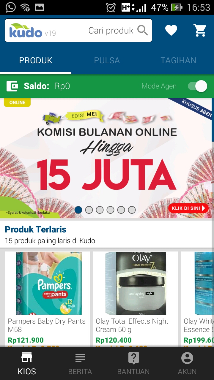 | Isi pulsa melalui apps KUDO |